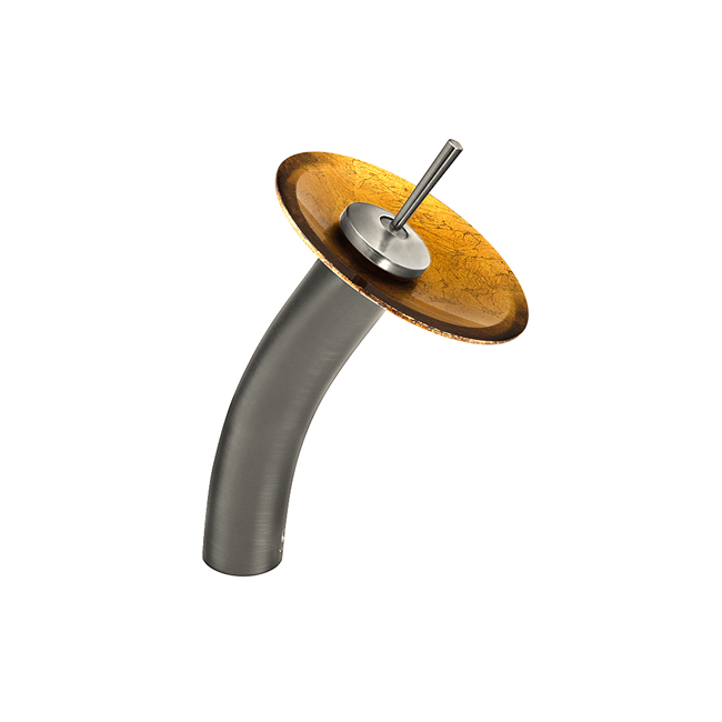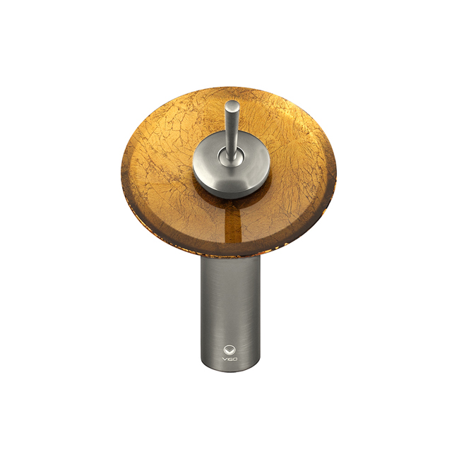 The VIGO Single Lever Waterfall Faucet in Brushed Nickel features a Liquid Gold glass disc