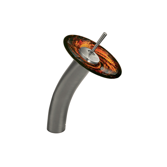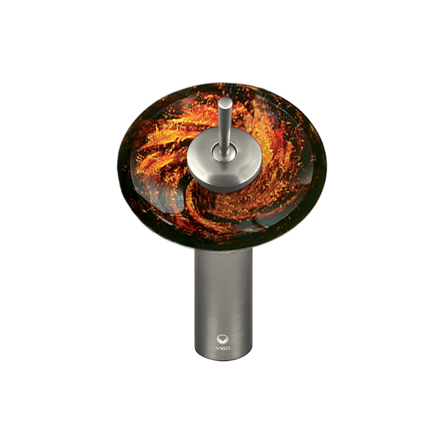 The VIGO Single Lever Waterfall Faucet in Brushed Nickel features a Northern Lights glass disc