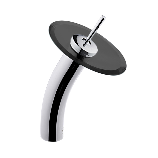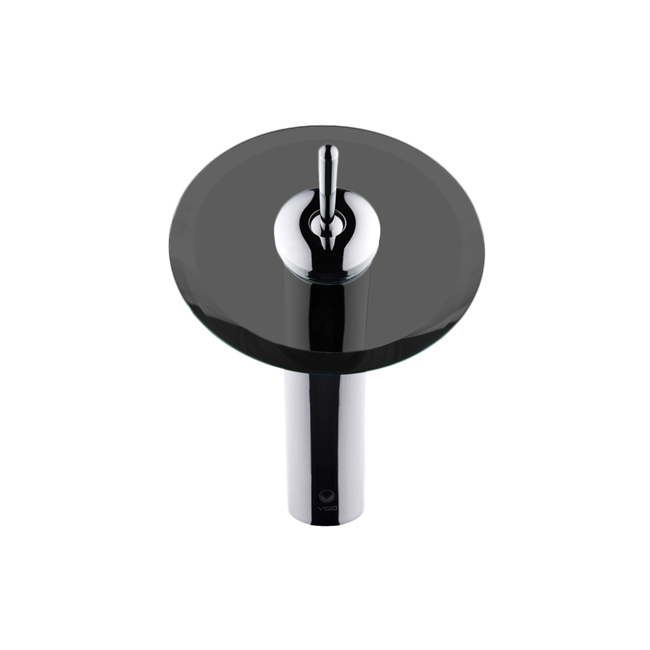 The VIGO Single Lever Waterfall Faucet in Chrome features a Sheer Black glass disc