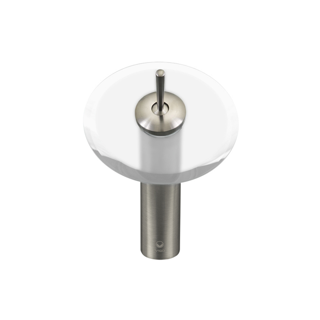 The VIGO Single Lever Waterfall Faucet in Brushed Nickel features a White Frost glass disc