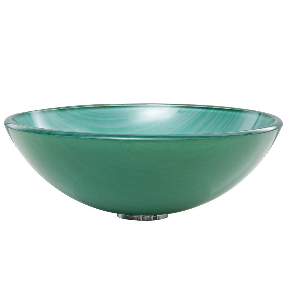 The VG07066 Whispering Wind glass vessel bowl features a greenish-blue hue and whips of white, bringing a breath of fresh air to your bathroom.
