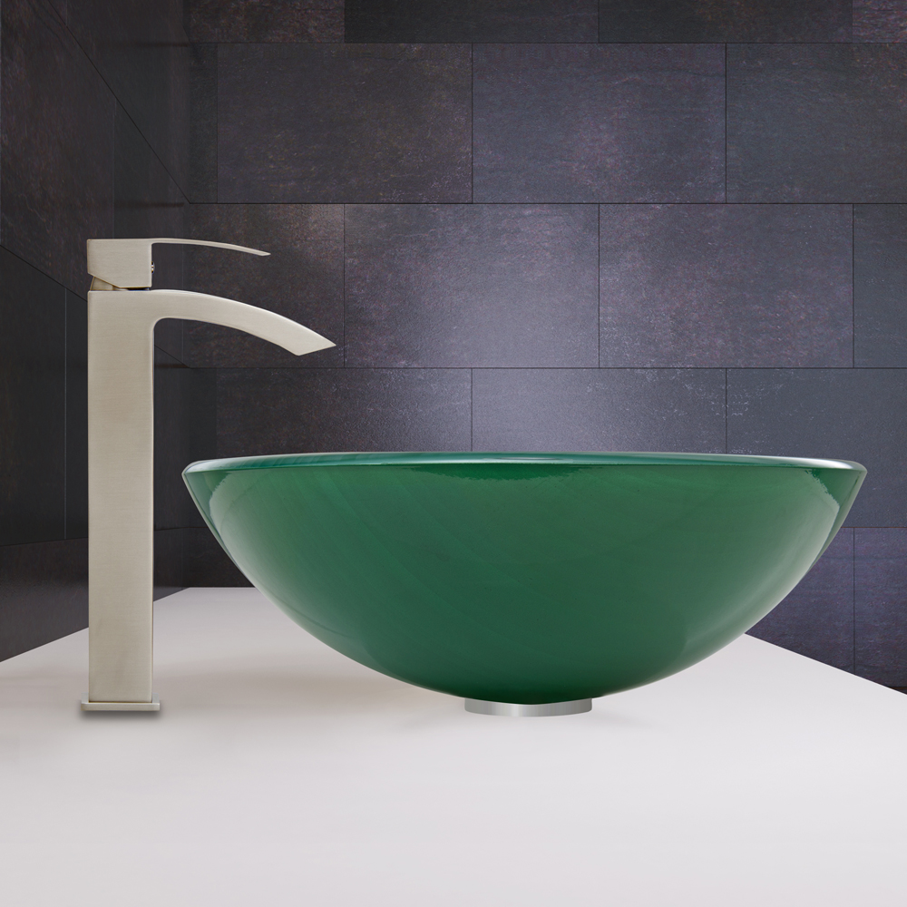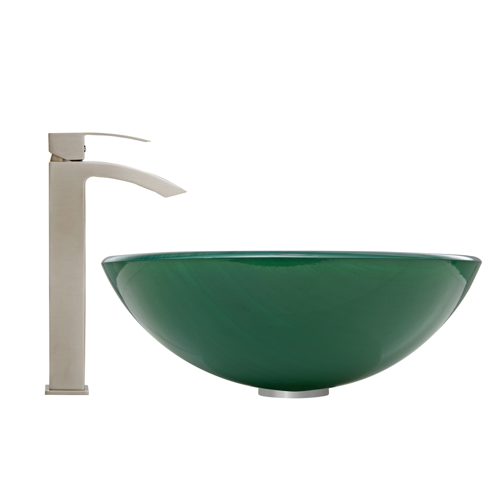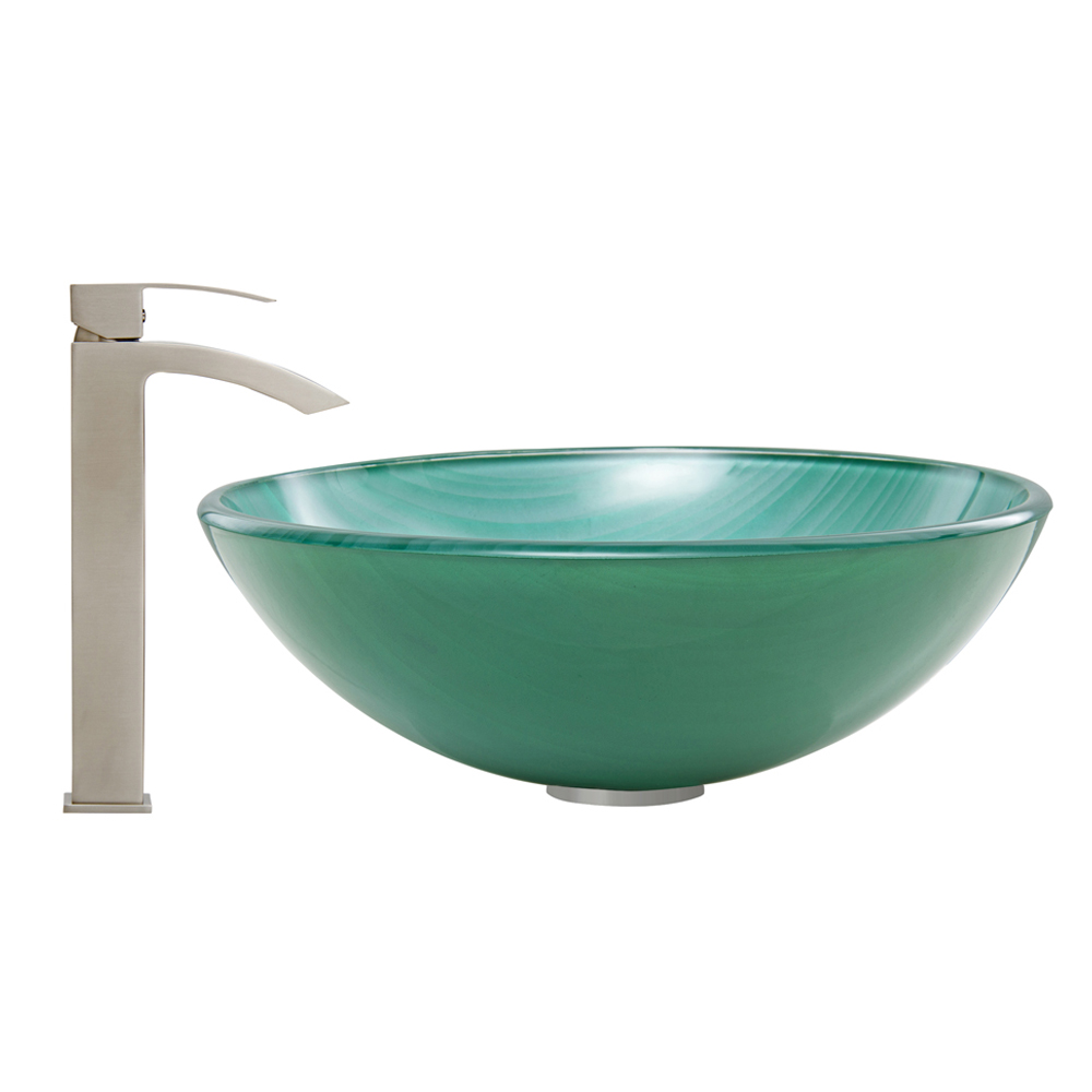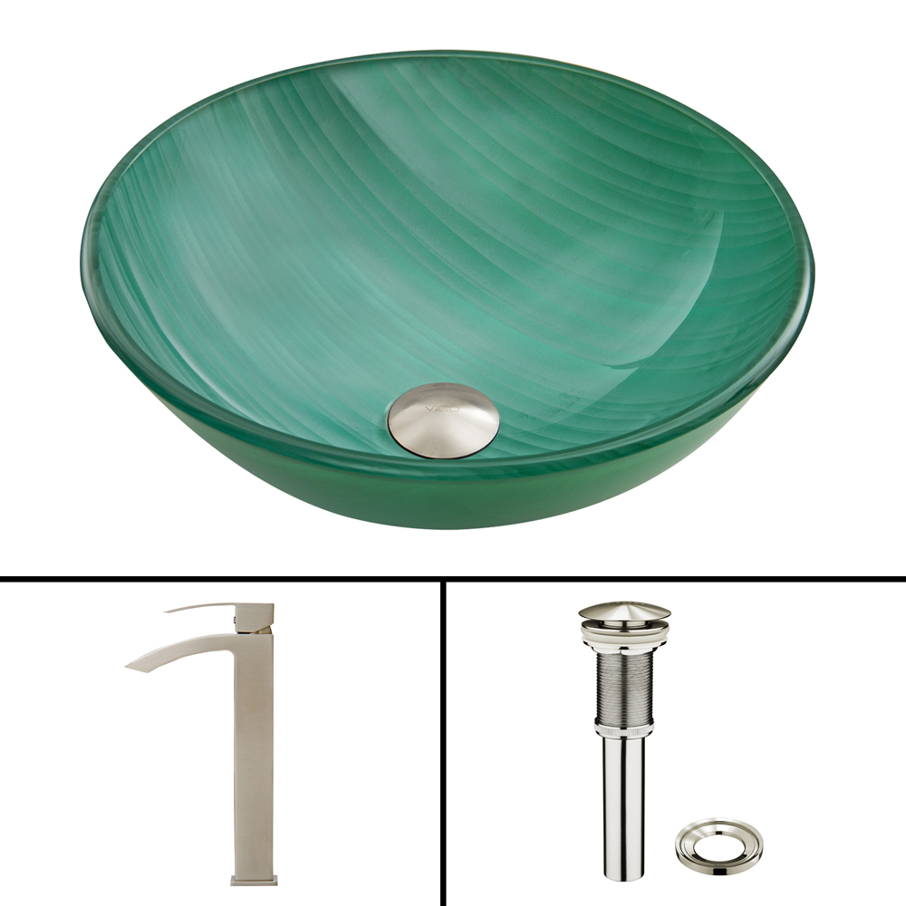 The VIGO Whispering Wind Glass Vessel Sink and Duris Faucet Set in Brushed Nickel Finish will blow a sense of modern design into your bathroom.