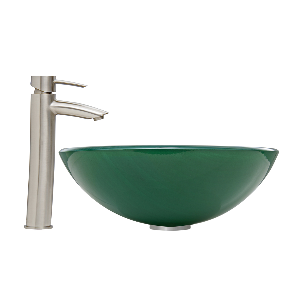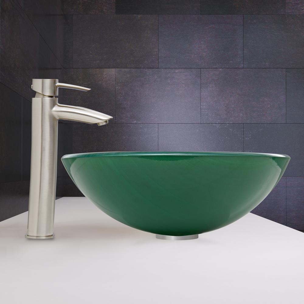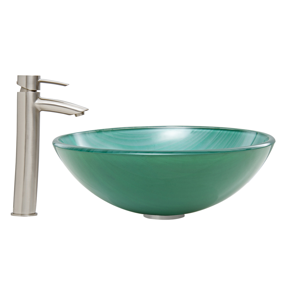 The VIGO Whispering Wind Glass Vessel Sink and Shadow Faucet Set in Brushed Nickel Finish will blow a sense of modern design into your bathroom.
