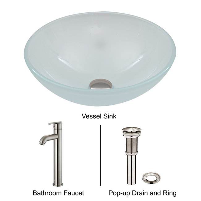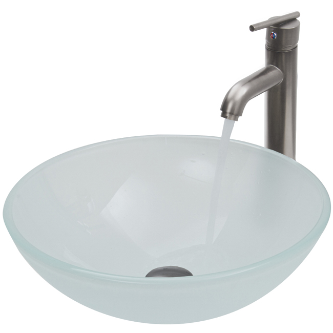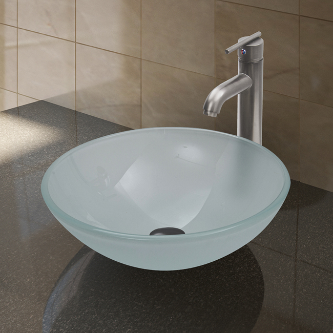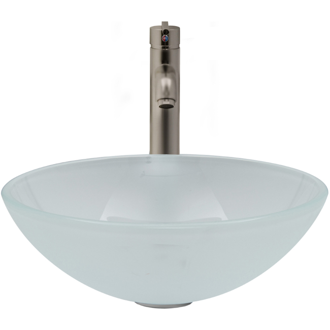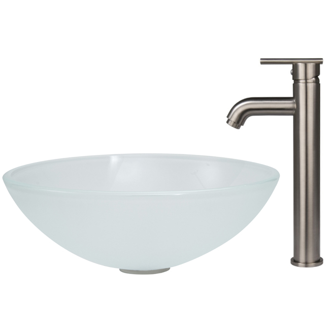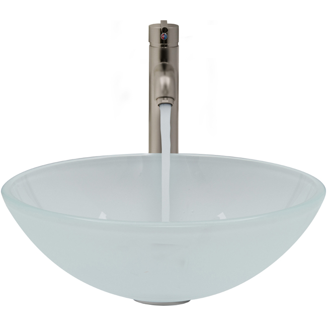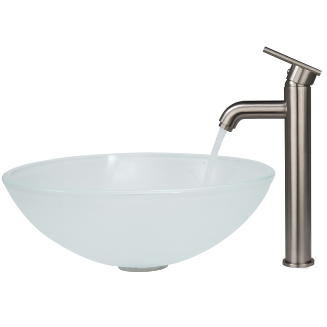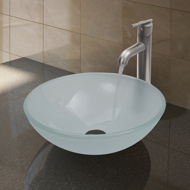 The VIGO White Frost glass vessel sink with Brushed Nickel faucet set is a clean and fresh addition for any bathroom.