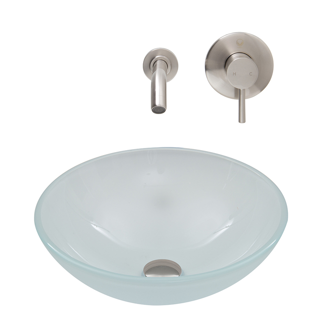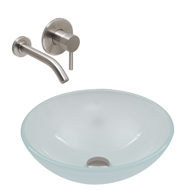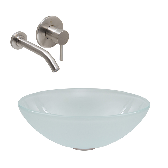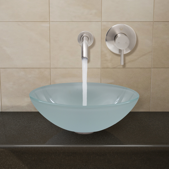 The VIGO White Frost glass vessel sink with Brushed Nickel wall mount faucet set is simplistic, yet stylish.