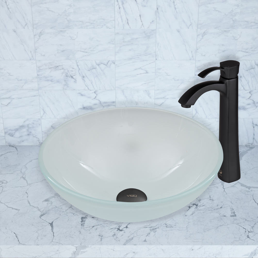The VIGO White Frosted Glass Vessel Sink and Otis Faucet Set in Matte Black Finish will transform your bathroom into a refreshingly stylish space.