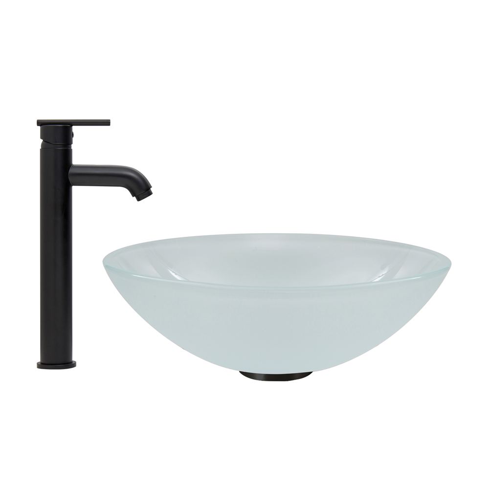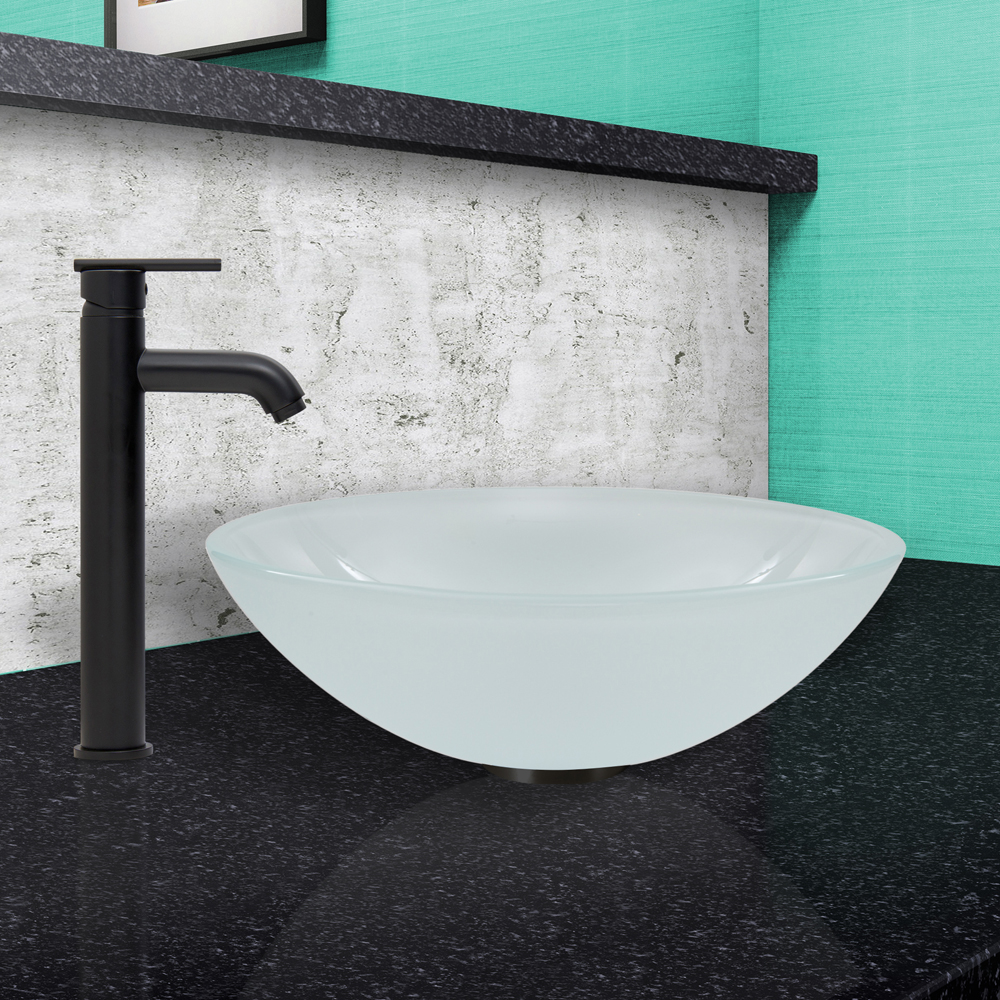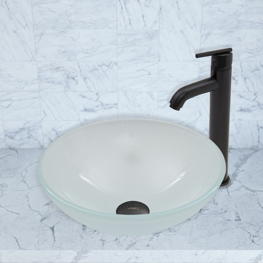 The VIGO White Frosted Glass Vessel Sink and Seville Faucet Set in Matte Black Finish will transform your bathroom into a refreshingly stylish space.