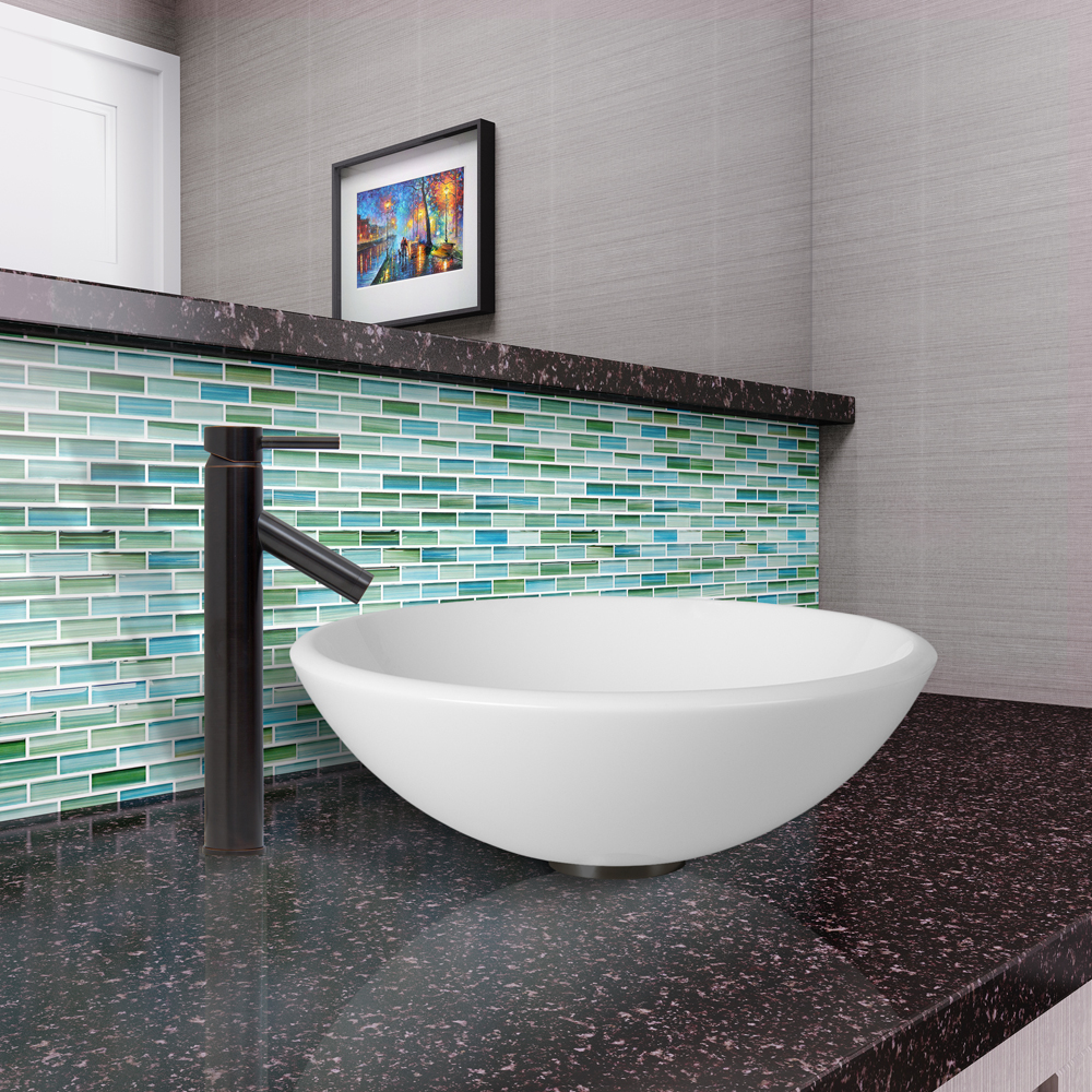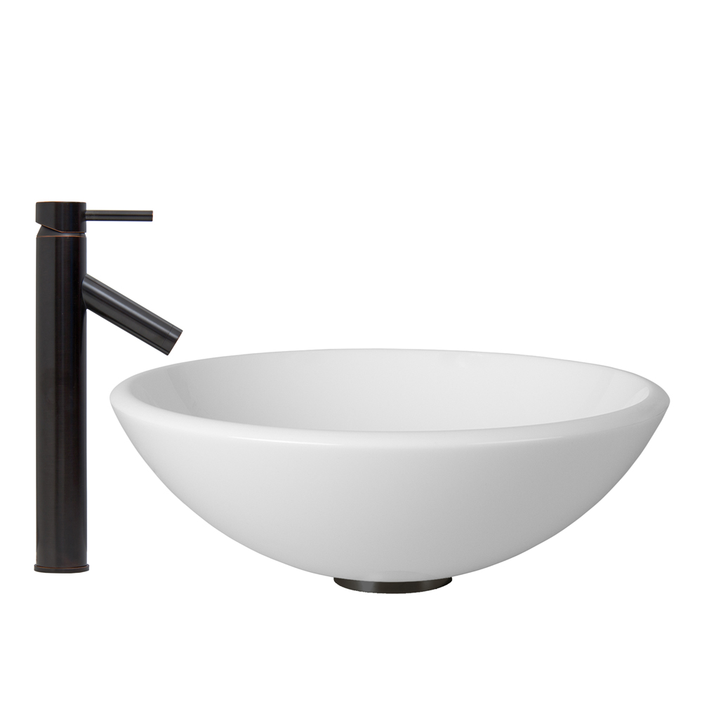 The VIGO White Phoenix Stone Glass Vessel Sink and Dior Faucet Set in Antique Rubbed Bronze Finish creates the perfect combination of style, elegance, and design for your bathroom.