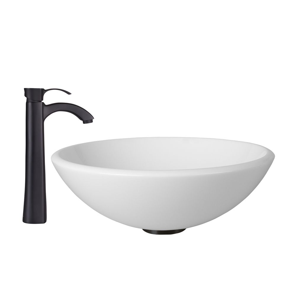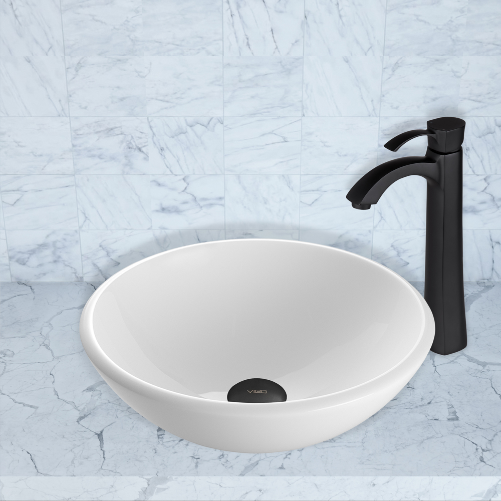 The VIGO White Phoenix Stone Glass Vessel Sink and Otis Faucet Set in Matte Black Finish creates the perfect combination of style, elegance, and design for your bathroom.