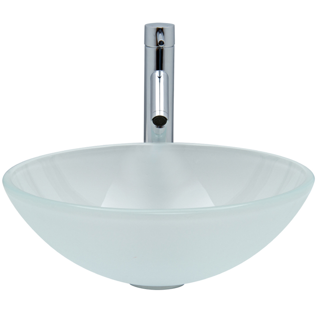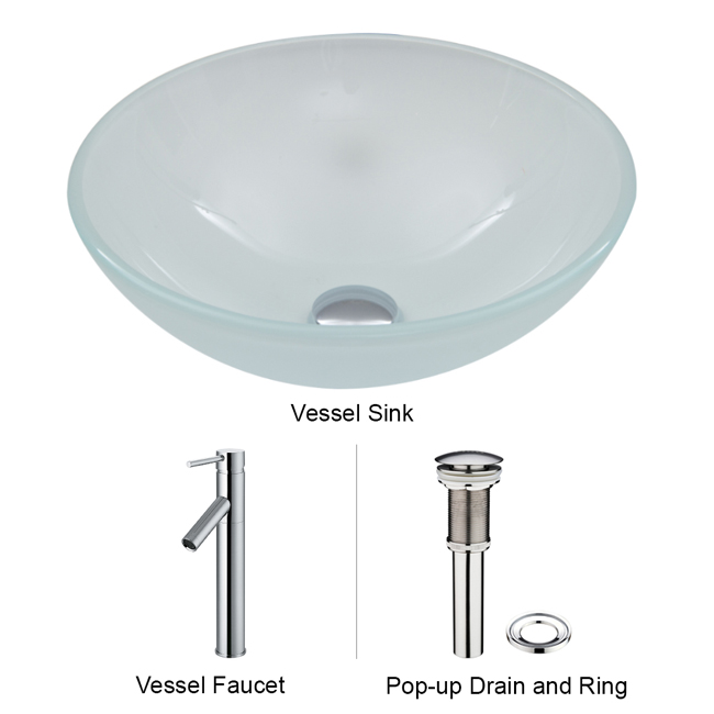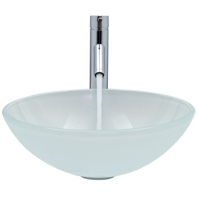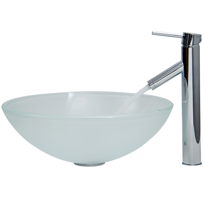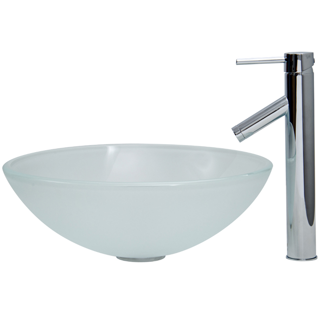 The VIGO White Frost glass vessel sink with Chrome faucet set is stylish and attractive.