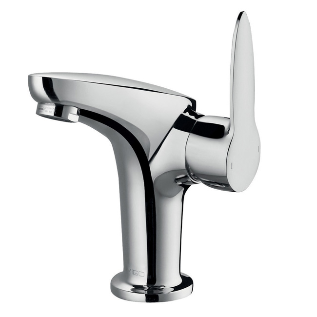 The VIGO Apollo is a simple, chrome finished, L-shaped faucet with a single lever.