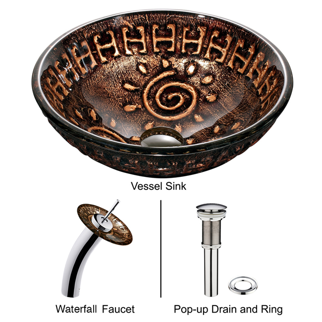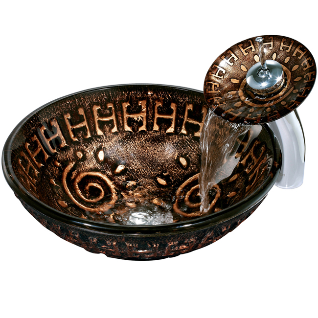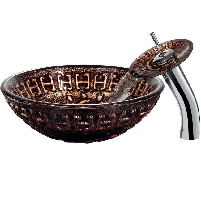 The VIGO Aztec glass vessel sink and matching waterfall faucet set