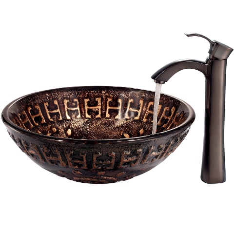 The VIGO Aztec glass vessel sink and faucet set introduces a playful elegance to your bathroom.