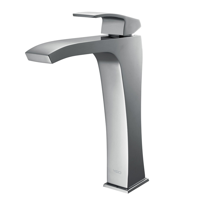 The VIGO Blackstonian vessel faucet in chrome finish features a