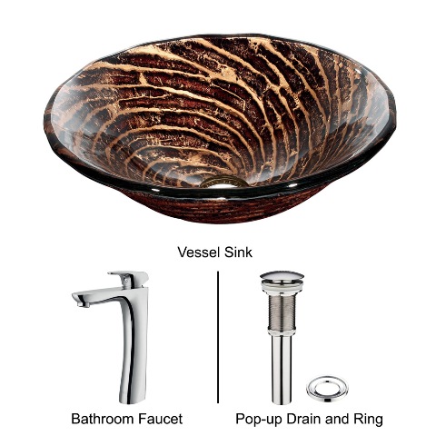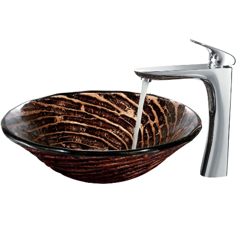 The VIGO Chocolate Caramel Swirl glass vessel sink and faucet set is sure to spark some attention.