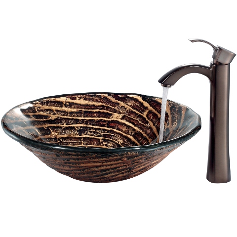 The VIGO Chocolate Caramel Swirl glass vessel sink and faucet set combines style, warmth and elegance into one package.