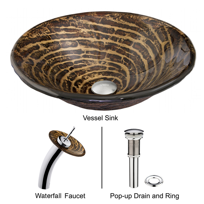 The VIGO Chocolate Caramel Swirl glass vessel sink and