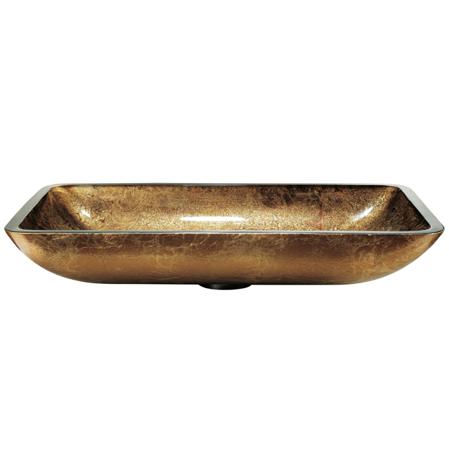 The VIGO Rectangular Copper glass vessel bowl features striking colors and