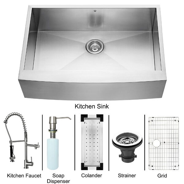 This set includes stainless steel kitchen sink, stainless steel kitchen faucet,
