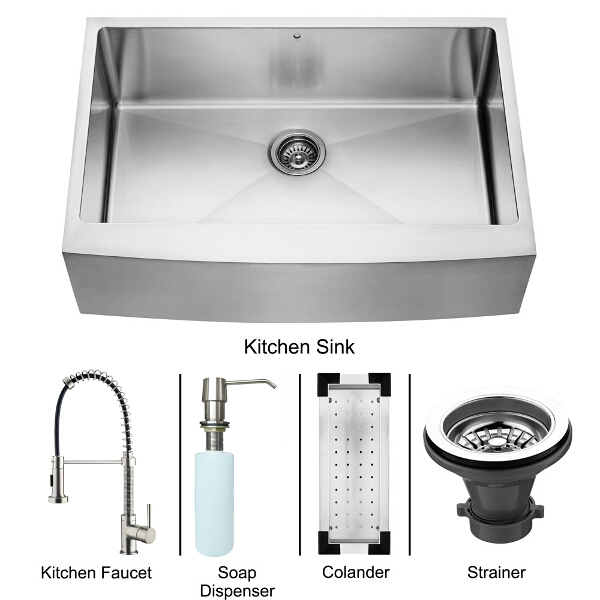 This set includes stainless steel kitchen sink, stainless steel kitchen faucet, matching colander,