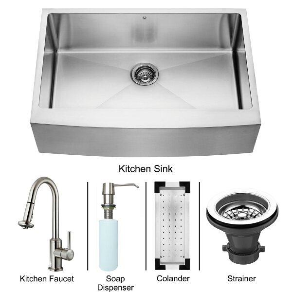 Give your kitchen a makeover starting with a VIGO Farmhouse Stainless Steel Kitchen Set.