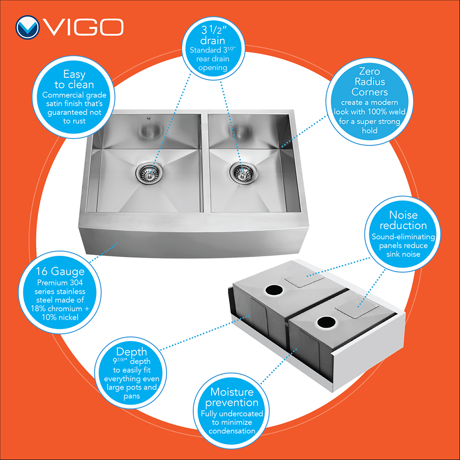 All VIGO kitchen sinks guaranteed to never rust