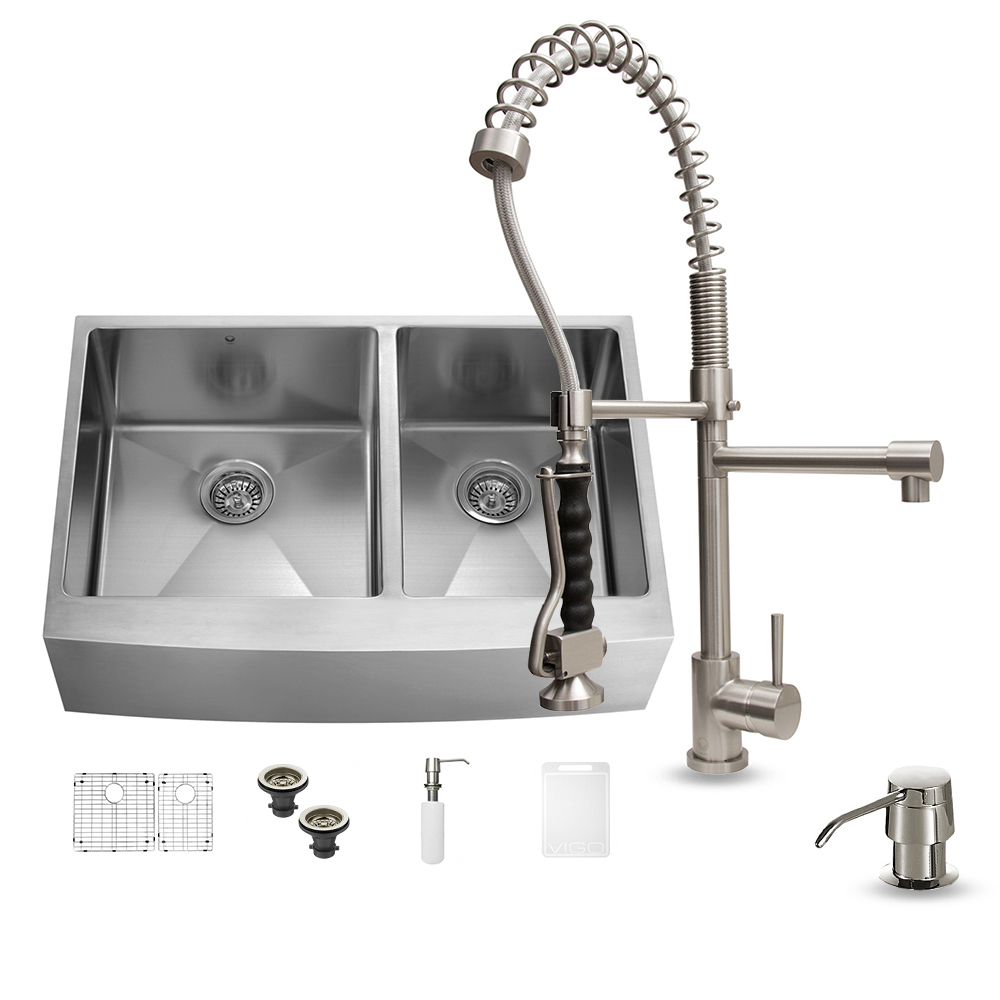 Give your kitchen a makeover starting with a VIGO Farmhouse Stainless Steel Kitchen Set.