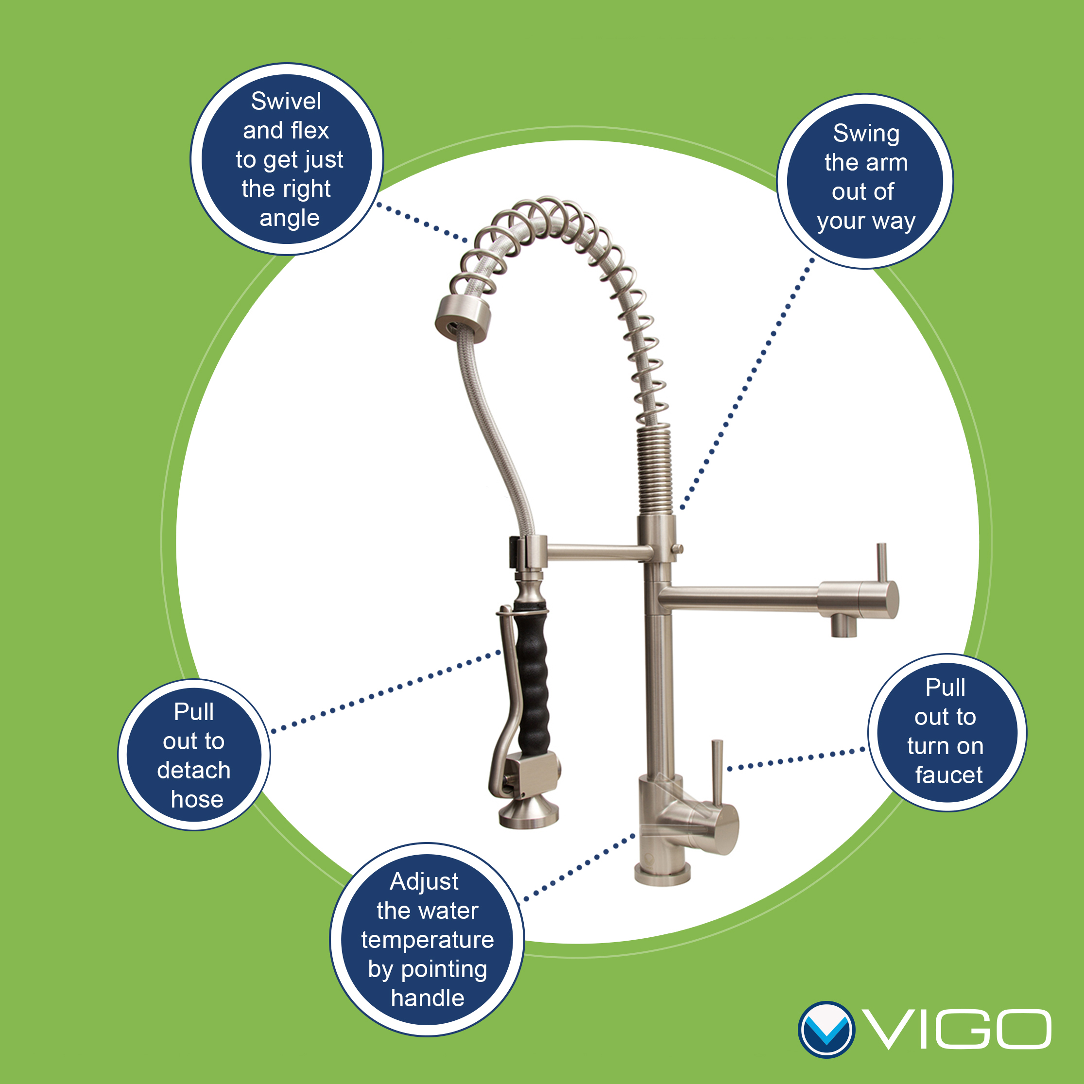 The VG02007ST Zurich Kitchen Faucet constructed from solid brass with Stainless Steel finish which ensures durability and longer life