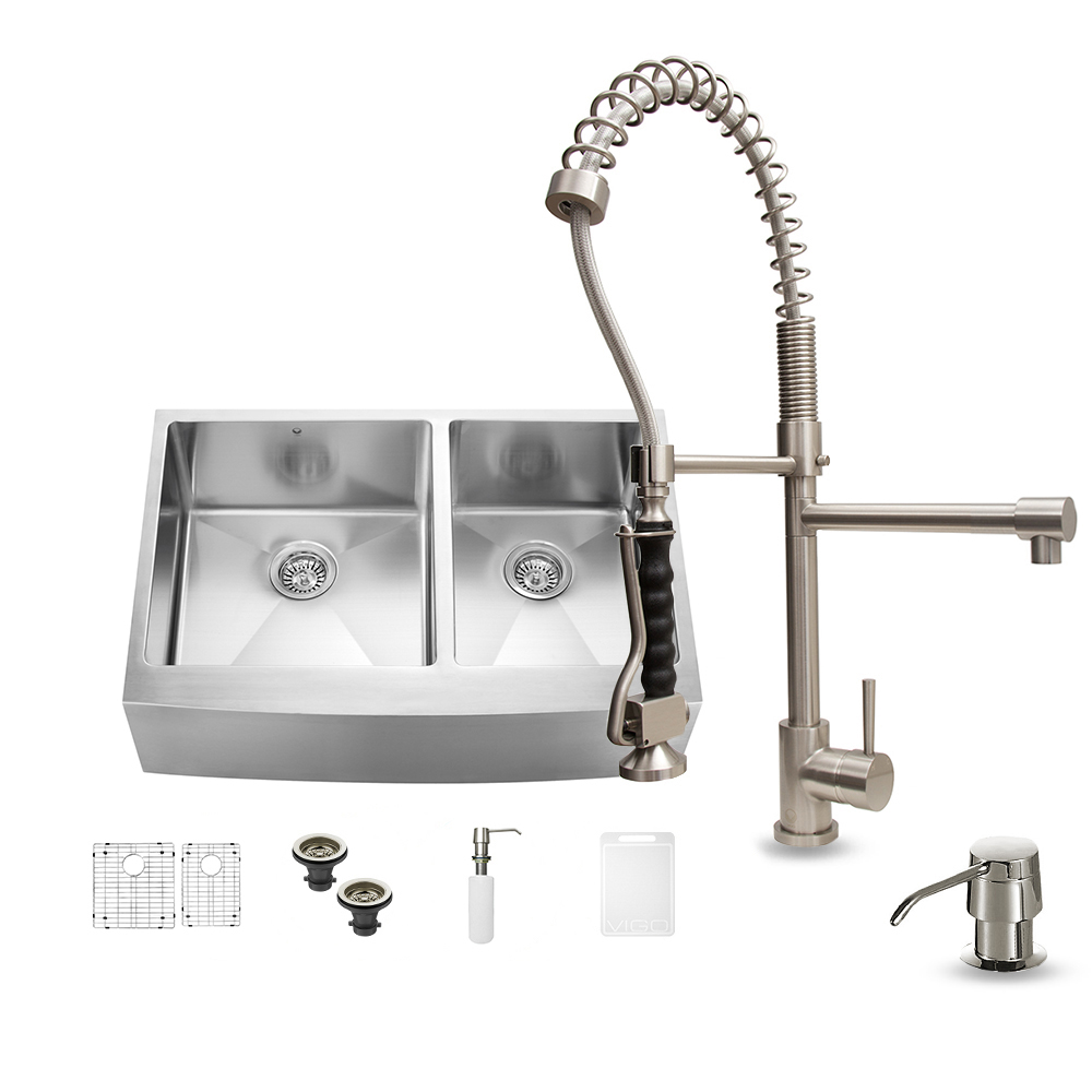 Give your kitchen a makeover starting with a VIGO Farmhouse Stainless Steel Kitchen Set.