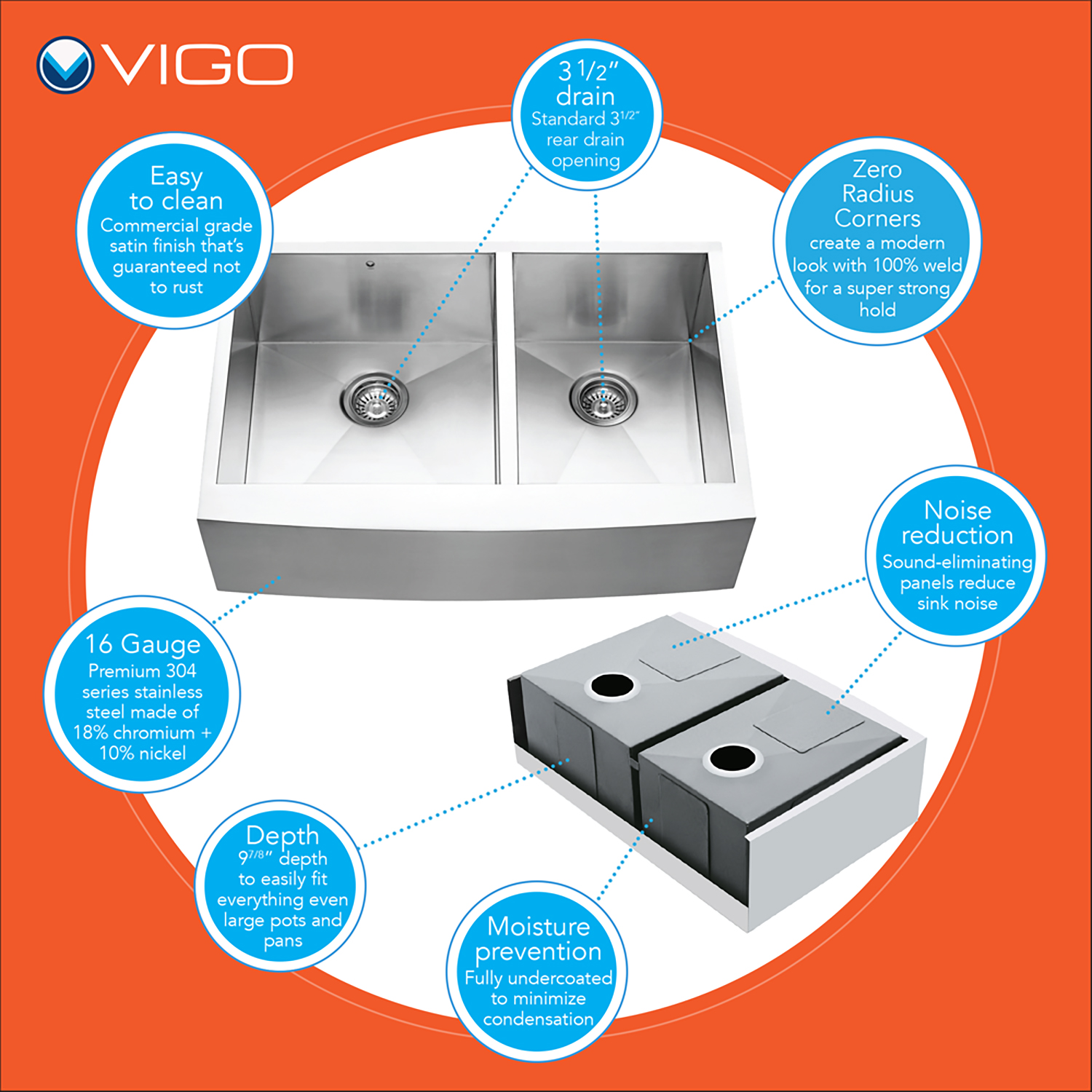 All VIGO kitchen sinks guaranteed to never rust