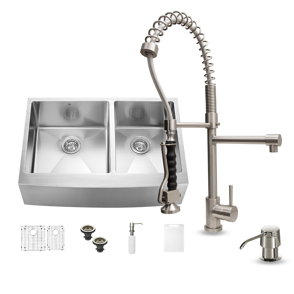 Give your kitchen a makeover starting with a VIGO Farmhouse Stainless Steel Kitchen Set.