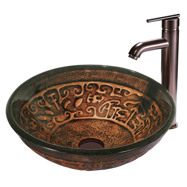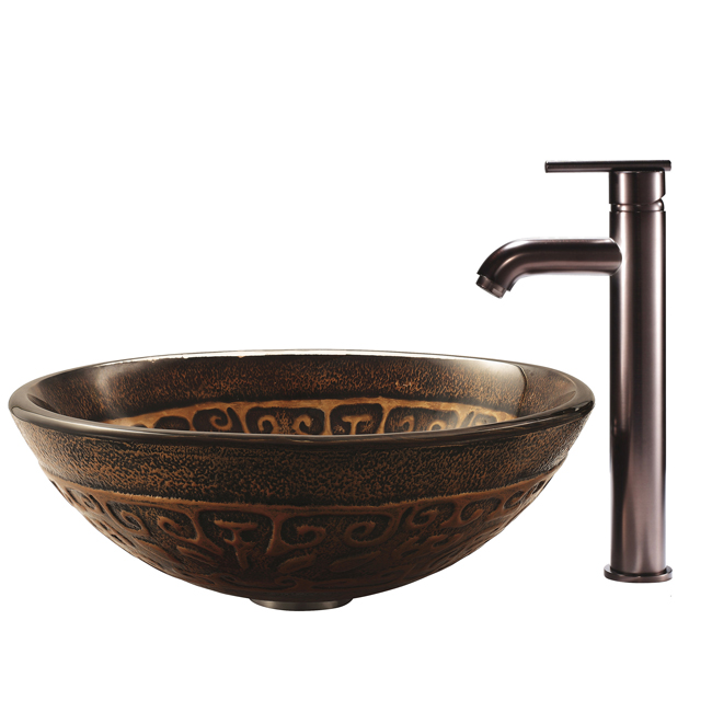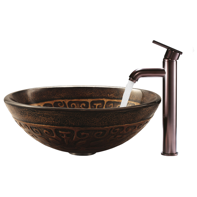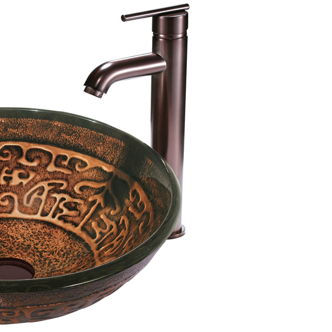 The VIGO Golden Greek glass vessel sink and faucet set will position itself as a coveted art piece in your bathroom.