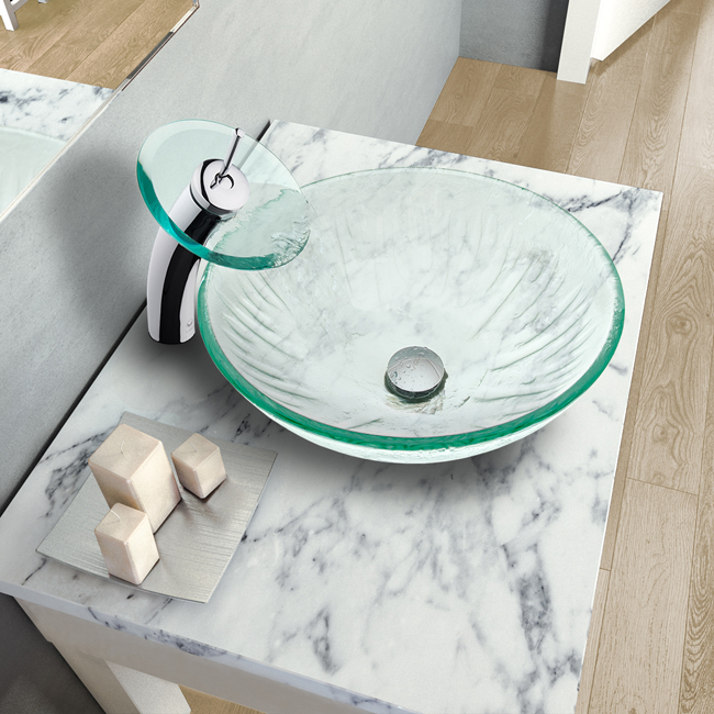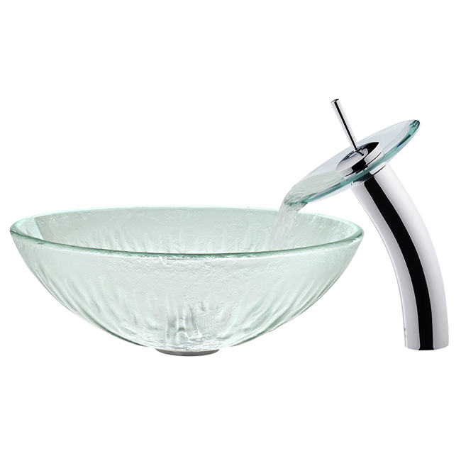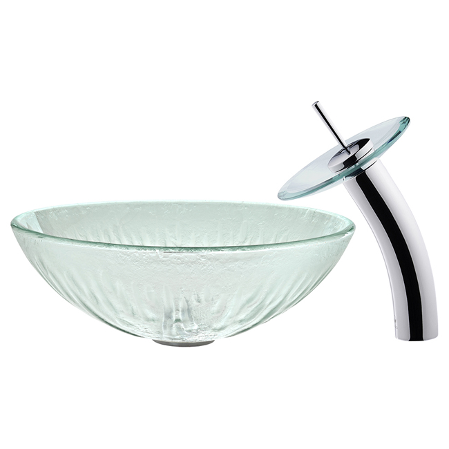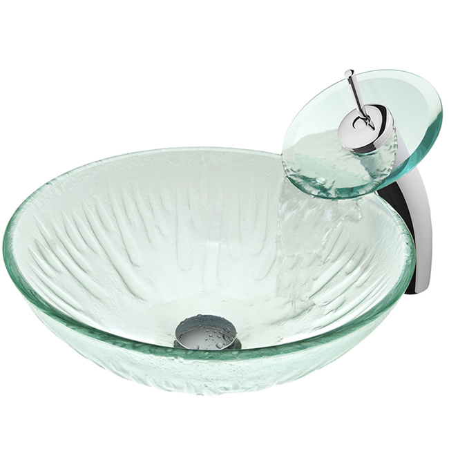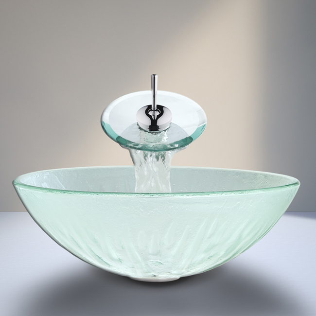 The VG07006 glass vessel bowl features an icicle-like pattern engraved into clear glass.