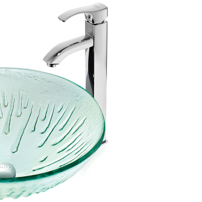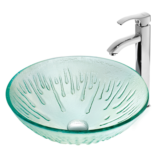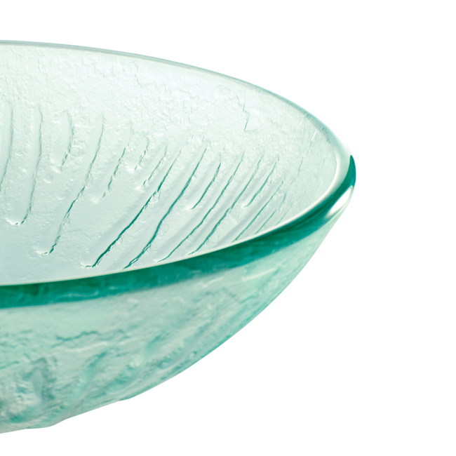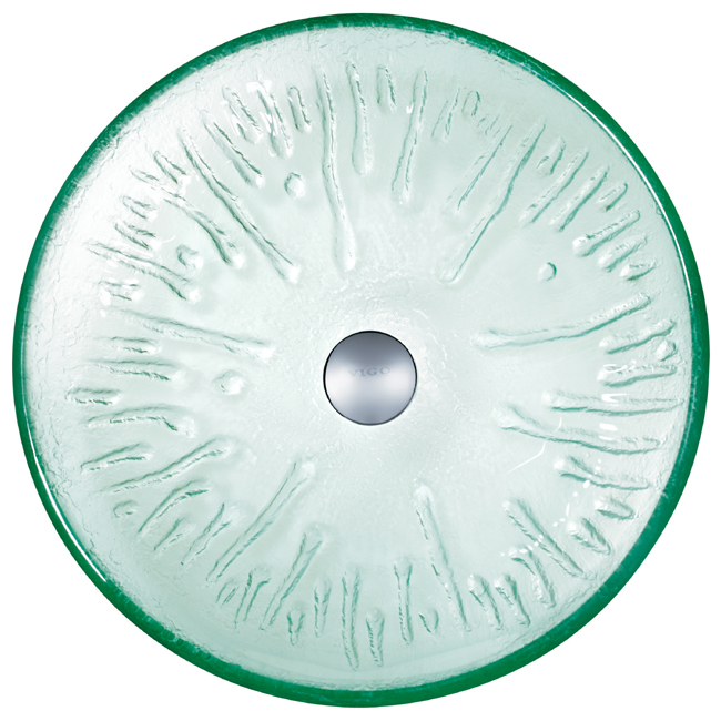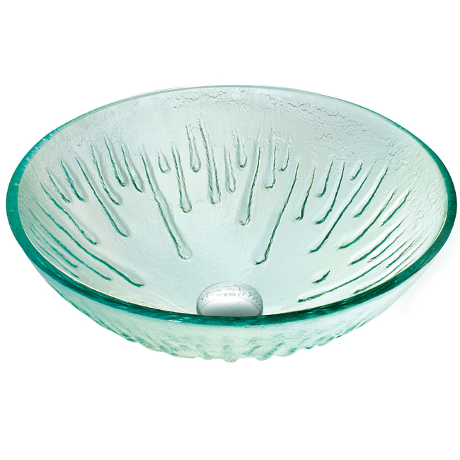 The VIGO Icicles glass vessel bowl features an icicle-like pattern engraved into clear glass.