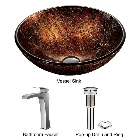 The VIGO Kenyan Twilight glass vessel sink and faucet set is radiant and beautiful.