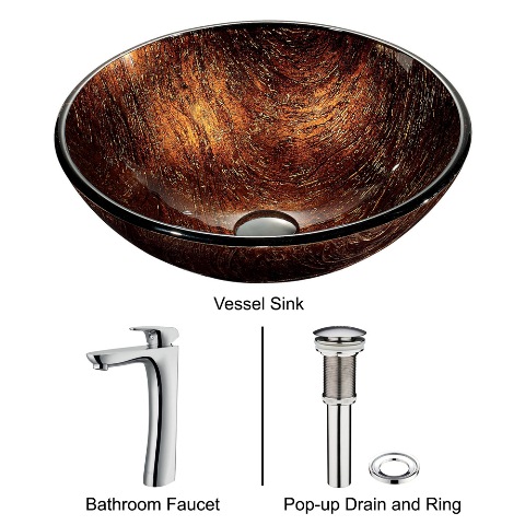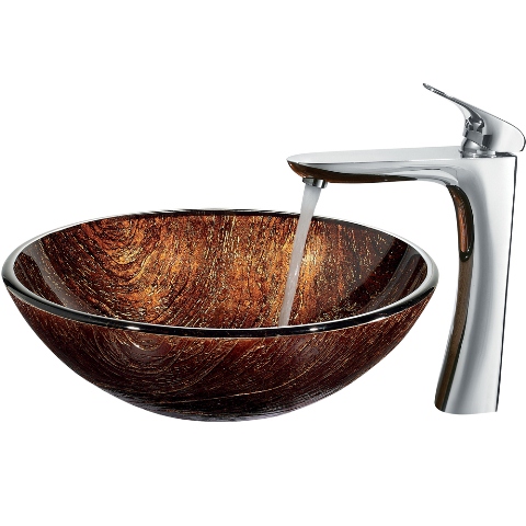 The VIGO Kenyan Twilight glass vessel sink and faucet set will keep your guests talking.