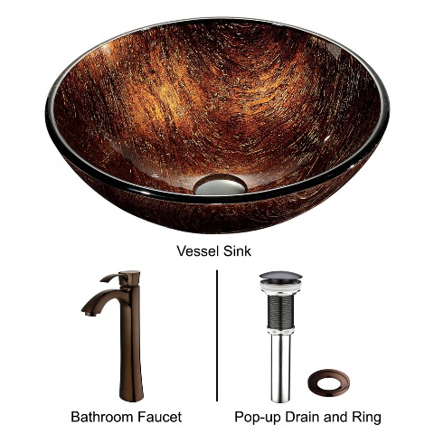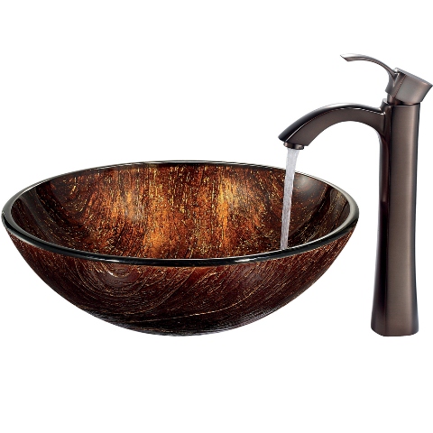 The VIGO Kenyan Twilight glass vessel sink and faucet set is elegant and luxurious.