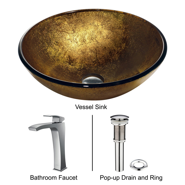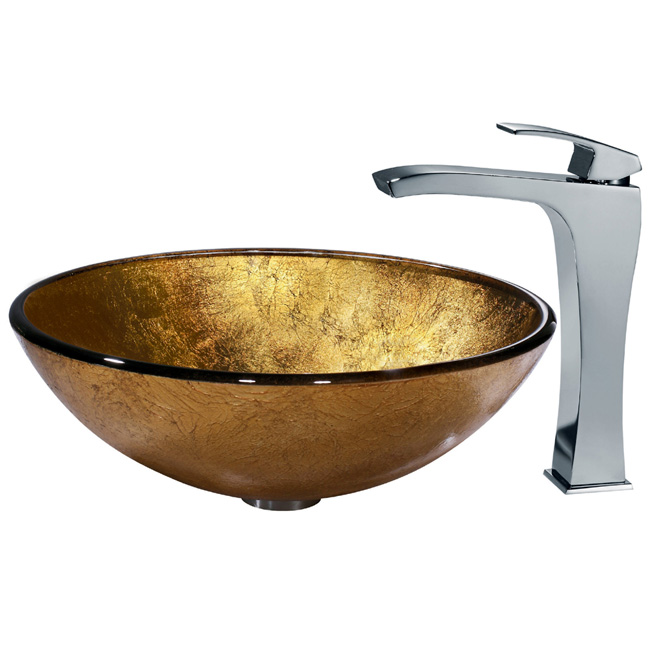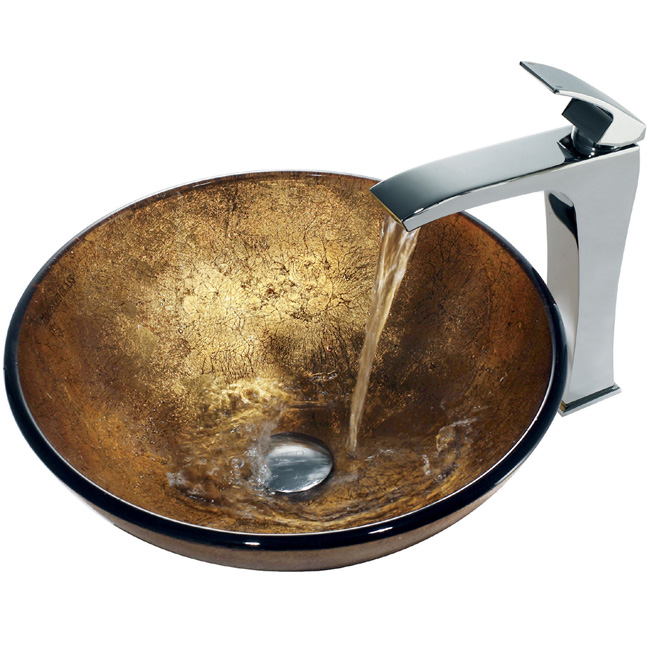 The VIGO Liquid Gold glass vessel sink and faucet set will provide your home with a luxurious burst of color.