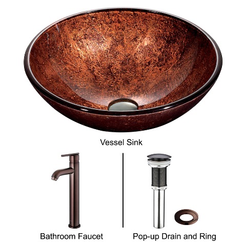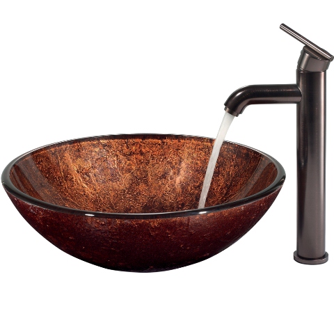 The VIGO Mahogany Moon glass vessel sink and faucet set is an excellent combination to bring an earthy tone to your bathroom.