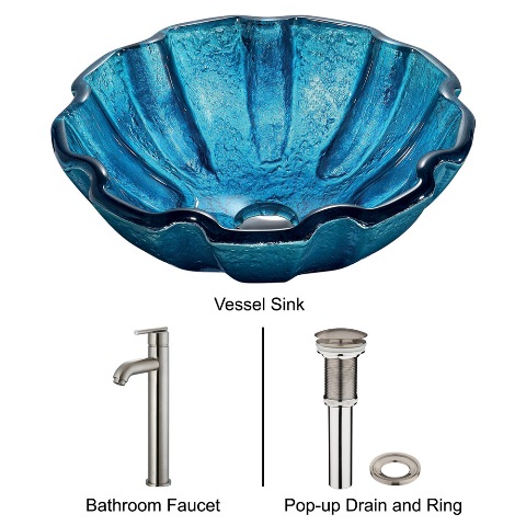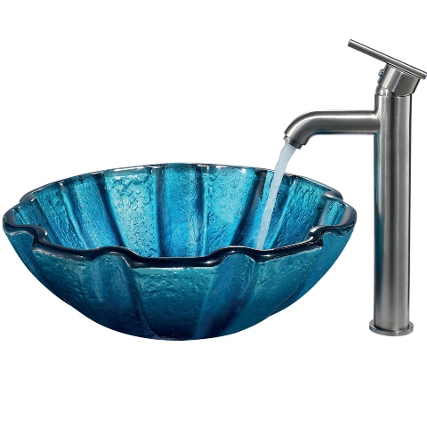 The VIGO Mediterranean Seashell glass vessel sink and faucet set will bring a cool summer feel to your home.