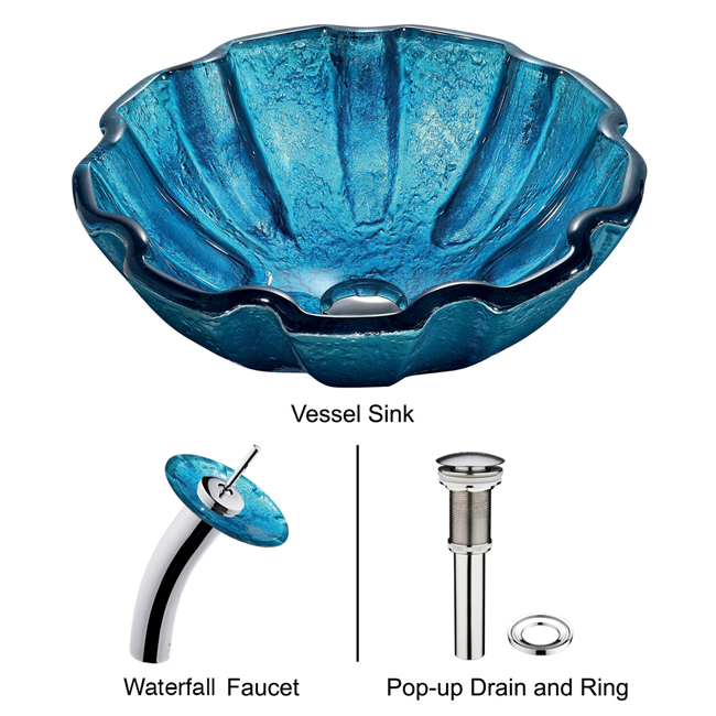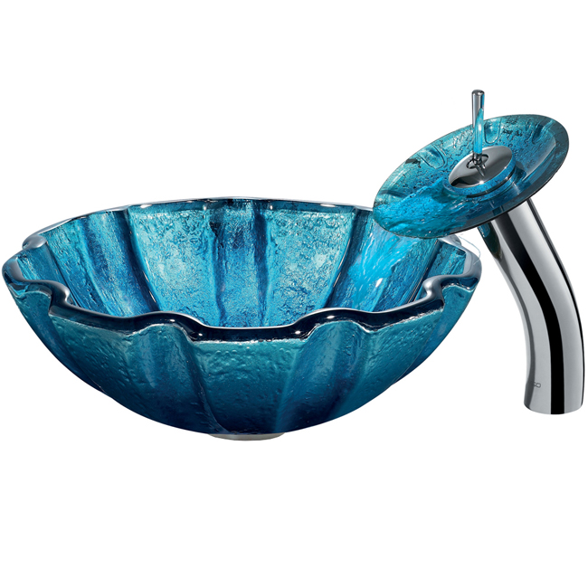 The VG07032 glass vessel bowl features a unique shell design and striking
