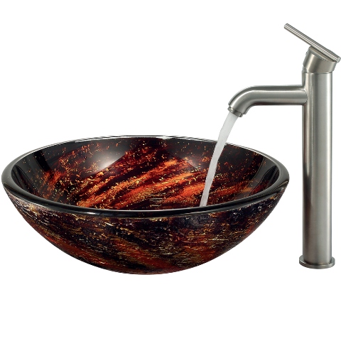 The VIGO Northern Lights glass vessel sink and faucet set is sure to remind you of an outer space voyage.