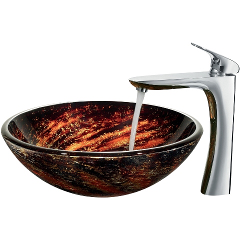 The VIGO Northern Lights glass vessel sink and faucet set will have your guests talking.