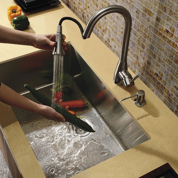 The VG02013ST Aylesbury Kitchen Faucet constructed from solid brass with Stainless Steel finish which ensures durability and longer life