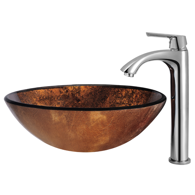 The VIGO Russet glass vessel sink and faucet set brings an exciting yet balanced hue to any home.