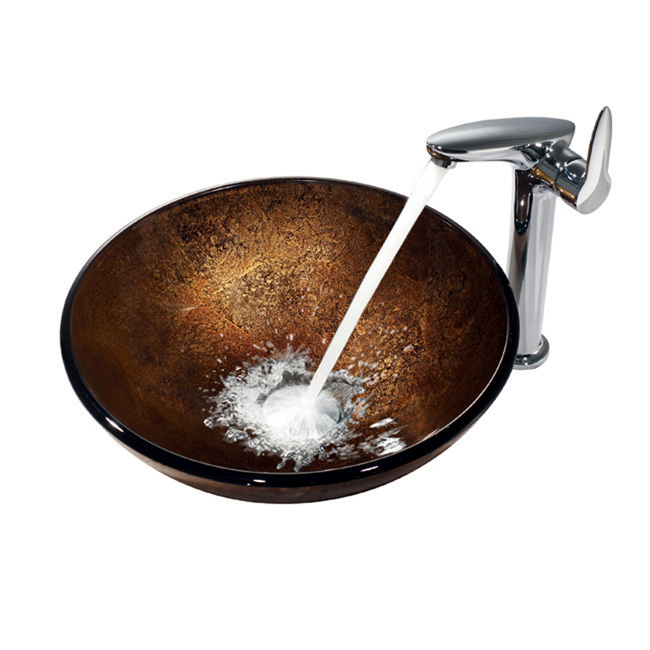 The VIGO Russet glass vessel sink and faucet set will bring a unique look into your home.