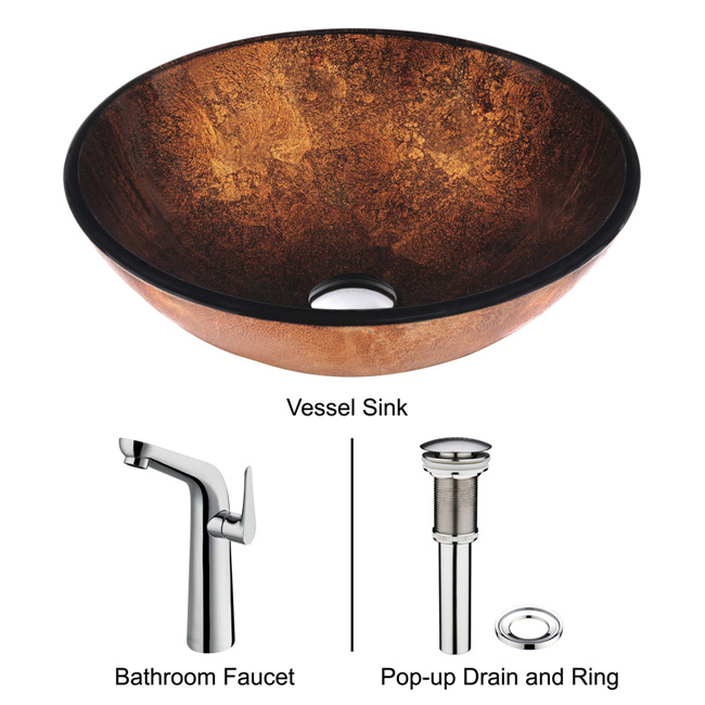 The VIGO Russet glass vessel sink and faucet set brings a balanced hue to any home.