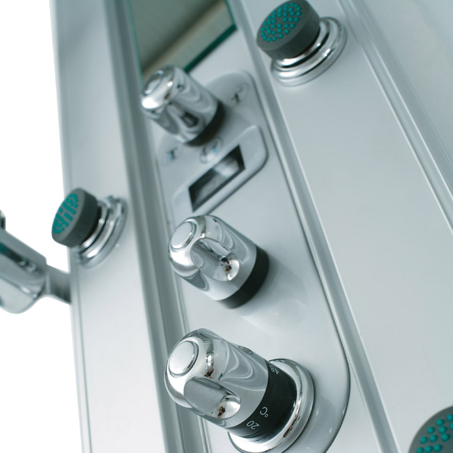 Unique massage panel is designed for flat wall and corner installation to provide better space utilization
