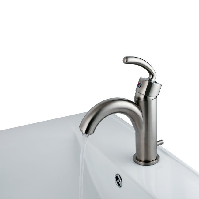 This brushed nickel arc-shaped VIGO faucet will make a bold statement in your bathroom.