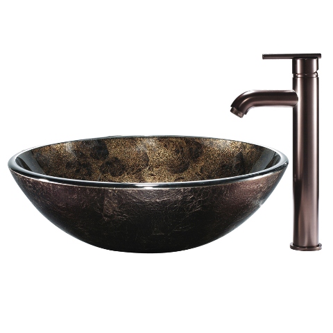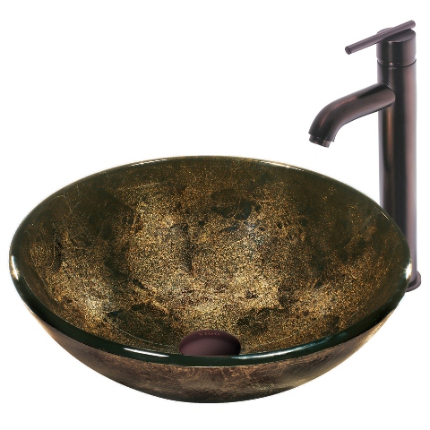 The VIGO Sintra glass vessel sink and faucet set is sure to look luxurious in any home.